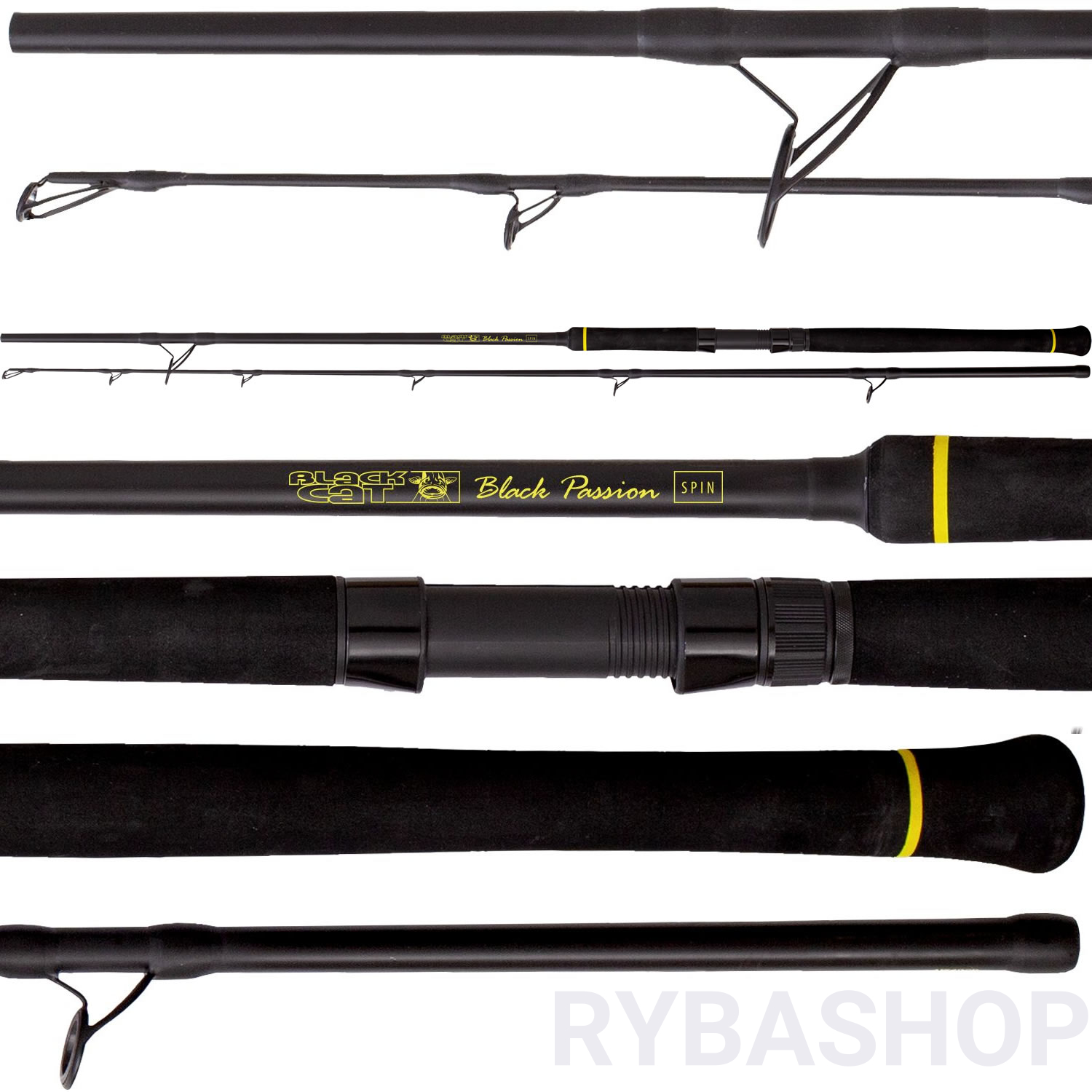 Die Black Passion Spin kommt in zwei Längen und deckt die vielseitigen Anforderungen an eine Welsspinnrute optimal ab. Die großen Ringe erlauben weite Würfe und der leichte, aber im Drill mit genügend Kraftreserven ausgestattete Blank erlaubt gefühlvolles und ermüdungsfreies Angeln mit Blinkern, Gummifischen und Wobblern – im Nahbereich als auch auf Distanz.