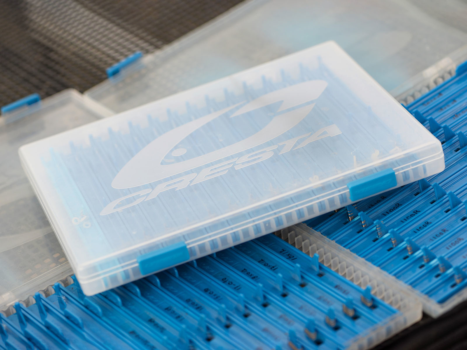 Cresta krabičky na návazce jsou vyvinuty pro co nejjednodušší použití. Každá skladovací část může být samostatně vyjmuta, což umožní snazší a rychlejší umístění nových návazců.