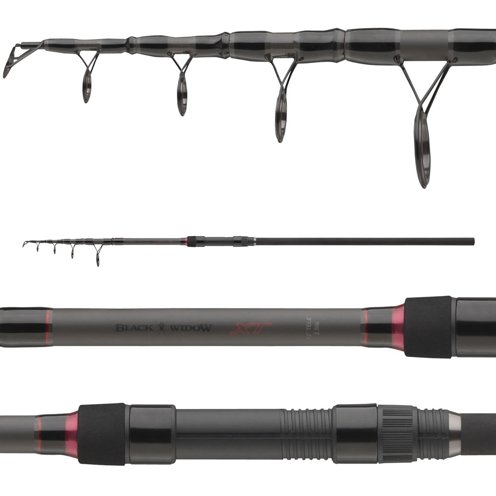 La version télescopique de la Black Widow XT Carp convainc par son blank fin et ses anneaux qualitatifs. L'action équilibrée de la canne est idéale pour des poids de 60 à 100g et permet d'atteindre de grandes distances. Pendant le combat, l'énorme réserve de puissance permet de diriger sans problème les carpes, même les plus grosses, vers l'épuisette. Les silures, jusqu'à 1.40m, ne posent également aucun problème. La taille compacte de la canne, un peu plus d'un mètre, permet un transport aisé et un montage rapide.