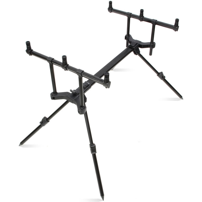 La marque anglaise NGT propose un nouveau modèle de pied très variable et stable qui s'adapte à tous les terrains. Ce petit stand très réussi sera particulièrement apprécié des amateurs du style de pêche britannique. Il est fabriqué en alliage d'aluminium léger au design noir mat. Les principaux avantages de ce support incluent des paires de pieds avant et arrière coulissantes, qui en déplaçant vers la partie centrale, nous modifions le centre de gravité du support et nous obtenons un trépied à quatre pieds du rodpod classique. Le réglage en hauteur des rails et des pieds télescopiques va de soi. La longueur du support peut être ajustée avec le clip central. Sur les barres horizontales, nous trouvons des écrous à vis avec un filetage de qualité pour un serrage et une orientation précis du dispositif de signalisation d'engagement. Ce stand offre un très bon rapport qualité prix.