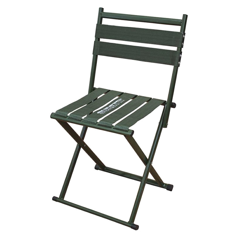 Jednoduchá stolička, klasický kříž s opěradlem z ocelových trubek průměru 22,5mm a nylonových popruhů místo celtoviny. Díky těmto použitým materiálům má stolička vysokou nosnost 300kg a je překvapivě pohodlná a lehká. Váží jen 1,22kg. Rám je komaxitovaný zelenou barvou a popruhy jsou upevněny uvnitř rámu pomocí ocelového drátu. Výška sedačky je po rozložení 41cm a sedák má 35 × 35cm. Celková výška i s opěradlem je 75cm.