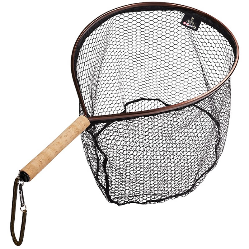 Podbierak w stylu rakiety przeznaczony dla wędkarzy łowiących pstrągi. Mocny magnetyczny klips na uchwycie, który można przymocować do kurtki lub kamizelki do brodzenia i można go wyciągnąć, gdy jest to potrzebne. Podbierak jest wyposażony w linkę zabezpieczającą, gdyby wypadł z rąk. Rama jest lekka, kompaktowa i łatwa w obsłudze. Siatka jest odpowiednia dla wędkarzy łowiących na przynęty i pokryta szybko schnącym PVC, aby chronić pstrągi. Idealna do łowienia zarośniętych odcinków na małych i średnich rzekach.