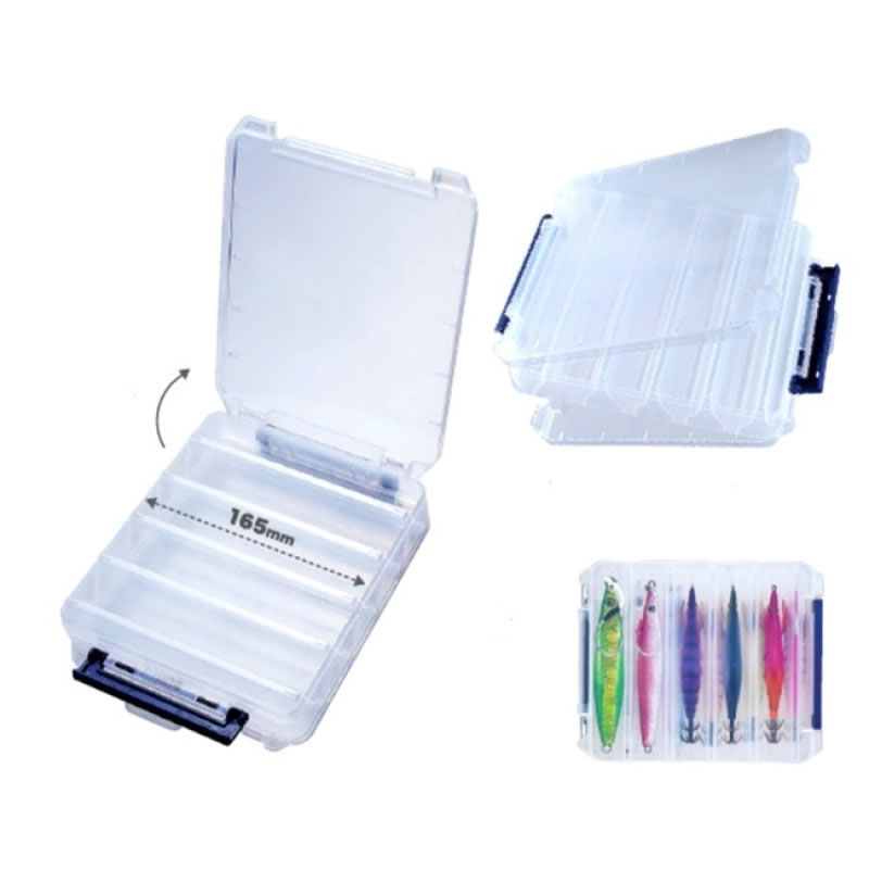 Oboustranná krabička na ukládání pilkrů, wobblerů. Jedinečné tvarování přihrádek dovolí uložení wobblerů a pilkrů z obou stran při minimální tloušťce krabičky. Rozměry: 20,5 × 17 × 4,5 cm.