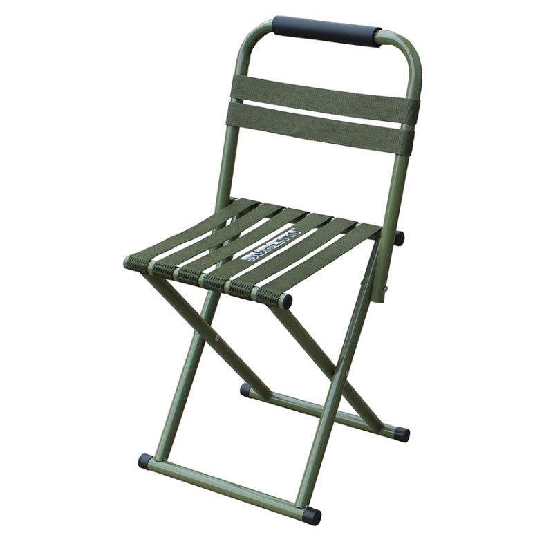 Prosty fotel, klasyczny krzyż z oparciem wykonanym z rurek stalowych o średnicy 22,5 mm i nylonowych pasków zamiast siatki. Dzięki zastosowanym materiałom krzesełko ma dużą nośność 300 kg i jest zaskakująco wygodne i lekkie. Waży zaledwie 1,22 kg. Rama jest komaksytizowana zieloną farbą, a paski są przymocowane wewnątrz ramy za pomocą drutu stalowego. Wysokość siedziska po rozłożeniu wynosi 40 cm, a siedzisko ma wymiary 30 x 30 cm. Całkowita wysokość łącznie z oparciem wynosi 69 cm.