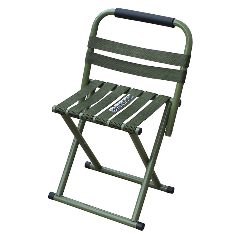 Prosty fotel, klasyczny krzyż z oparciem wykonanym z rurek stalowych o średnicy 22,5 mm i nylonowych pasków zamiast siatki. Dzięki zastosowanym materiałom krzesełko wytrzymuje duże obciążenie wynoszące 300 kg, jest zaskakująco wygodny i lekki. Waży zaledwie 1,13 kg. Rama jest komaksytizowana zieloną farbą, a paski są przymocowane wewnątrz ramy za pomocą drutu stalowego. Wysokość siedziska po rozłożeniu wynosi 36 cm, a siedzisko 30 x 27 cm. Całkowita wysokość łącznie z oparciem wynosi 60 cm.