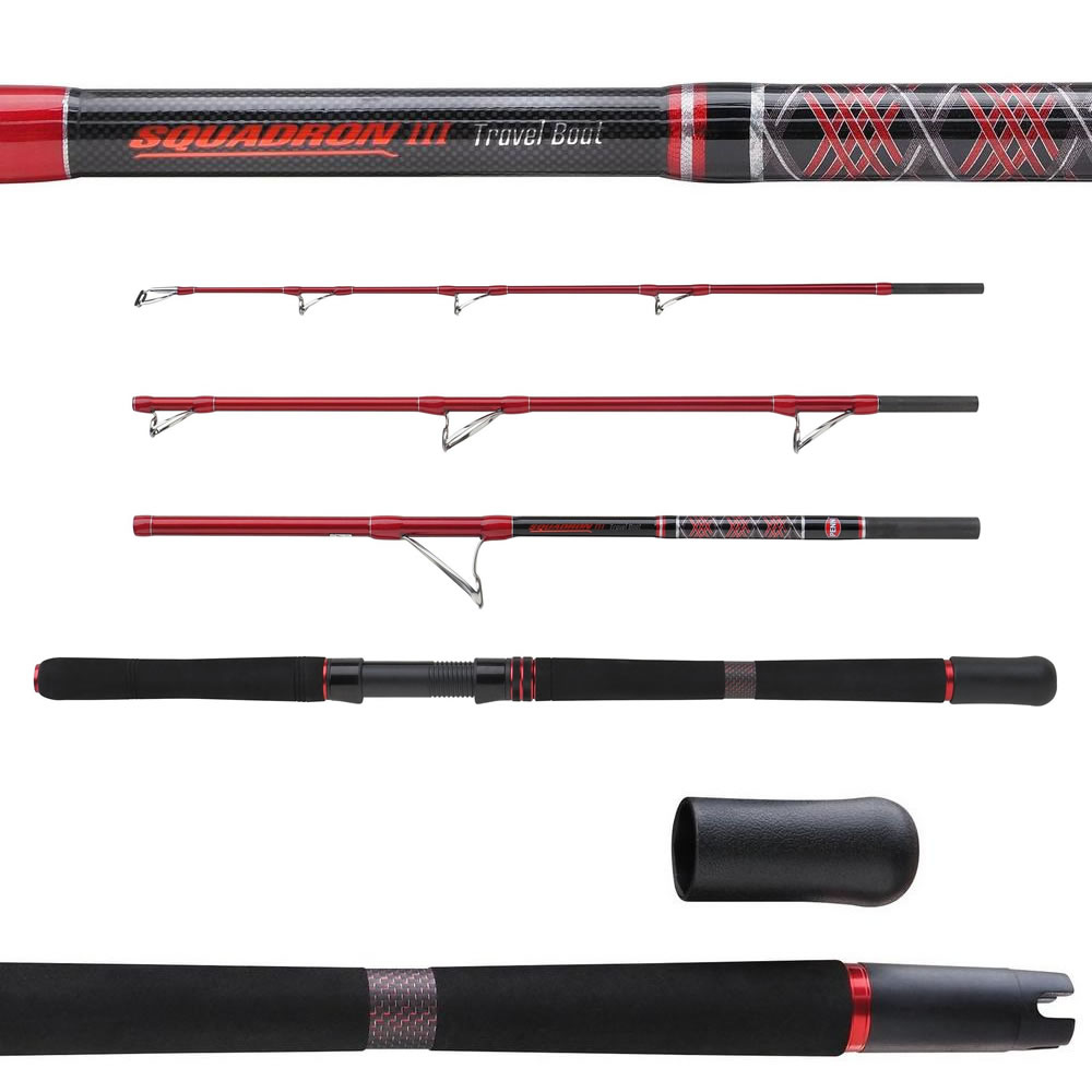 Oferując wyjątkowy stosunek jakości do ceny, seria wędek PENN Squadron III Travel Boat charakteryzuje się nowoczesną akcją blanku połączoną z oszałamiającym wyglądem. Wykonane z węgla 24T, 4-częściowe blanki nadają się do ogólnego łowienia dennego dorszy, molw, a cięższe wersje są również idealne do połowu halibutów w Norwegii. Wędki Travel Boat mają taką samą długość rękojeści jak zwykłe wędki do łowienia z łodzi, ale blank został dostosowany do konstrukcji 3-komponentowej, więc nie poczyniono żadnych ustępstw w zakresie pozycji uchwytu i gniazda kołowrotka! Wykończone ergonomicznie ukształtowanymi uchwytami EVA o wysokiej gęstości i przelotkami SW.