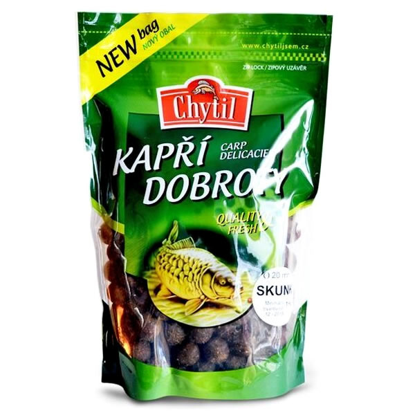 Kulki na bazie mączki rybnej, białek mleka i zupełnie nowych przypraw (papryczki Naga Bih Jolokia, Kardamon i inne). Dodajemy AMK Skunk Shit bez esencji, czyli z innymi kulkami funkcjonalnymi Red Rambo, bez esencji i olejków eterycznych. Udało nam się uzyskać wyjątkowo ostry smak i delikatny aromat, na który z doświadczenia wynika, że karp bardzo szybko reaguje. Po napełnieniu kulek SKUNK w Turbodip Skunk lub bezpośrednio w płynnej karmie Skunk Shit, kulki nie nie przyjmuj zapachu błota na dnie. WSKAZÓWKA: Zalecamy załadowanie kulek do kąpieli lub płynnej karmy Skunk Shit 24 godziny przed polowaniem, kulki nie dostają obcych zapachów do wody i wysyłają silne sygnały zapachowe dla ryb.