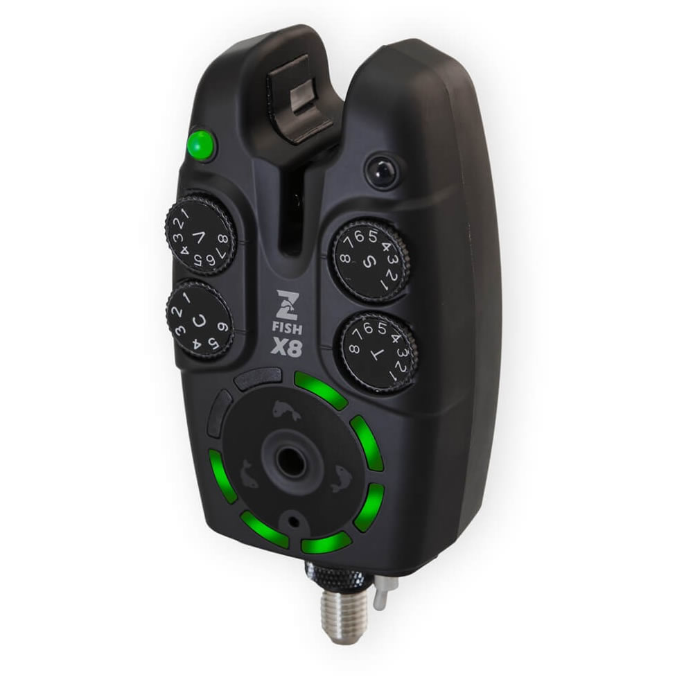 Nowa generacja sygnalizatora ZFISH Bite Alarm Zx8 PRO to bez wątpienia nasz nowy okręt flagowy wśród sygnalizatorów. Wersja PRO to nasz najnowszy, najbardziej zaawansowany model, podczas którego opracowywania położyliśmy nacisk na wyeliminowanie wszystkich niedociągnięć poprzedniej generacji. Zx8 oferuje 6 kolorów i 8 tonów dźwiękowych (w tym 2 zupełnie unikalne, głębokie tony, zaprojektowane specjalnie do nocnego wędkowania). Wyposażono go także w alarm antykradzieżowy. Kolejną przydatną funkcją jest dioda pamięci strzału, dzięki której możesz sprawdzić, czy nastąpił „strzał w przód” (jazda) czy tzw. „spadochron” (strzał w tył, w twoim kierunku). Oczywiście, istnieje funkcja monitorowania wibracji oraz łatwa regulacja ogólnej czułości i głośności. Nowe Zx8 zostały przetestowane w ekstremalnych warunkach, dzięki czemu możemy ręczyć za ich odporność na wodę i kurz, a ponadto działają bez żadnych problemów w odległości do 200 m.