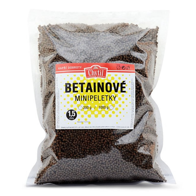 Betainové minipeletky jsou vhodné pro použití do krmných směsí, PVA sáčků apod. Obsahují vysoké  procento tříděných rybích mouček + betain, který rybám vytváří silný potravinový signál.