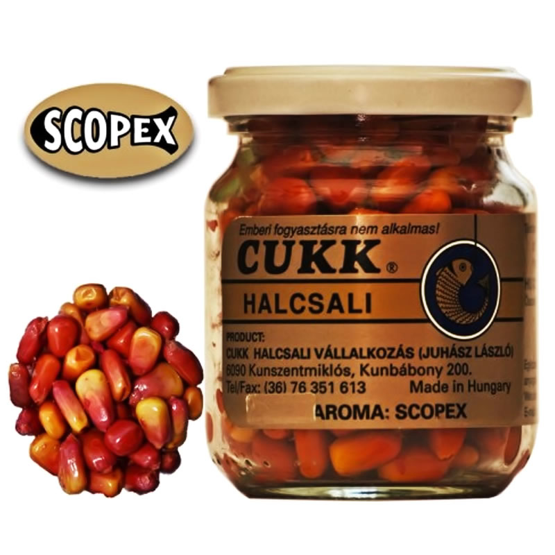 Výběrová nakládaná kukuřice bez nálevu, barvená. Různé druhy speciální kukuřice pro lov kaprovitých ryb. Velmi dobře drží na háčku, při napichování nepraská. Tvrdost a odolnost zrnek proti háčkům jsou ideální. Po otevření a pečlivém opětovném uzavření je lze používat nepřetržitě měsíce bez rizika znehodnocení. Použitá barviva jsou potravinářská, nezávadná pro zdraví a životní prostředí.