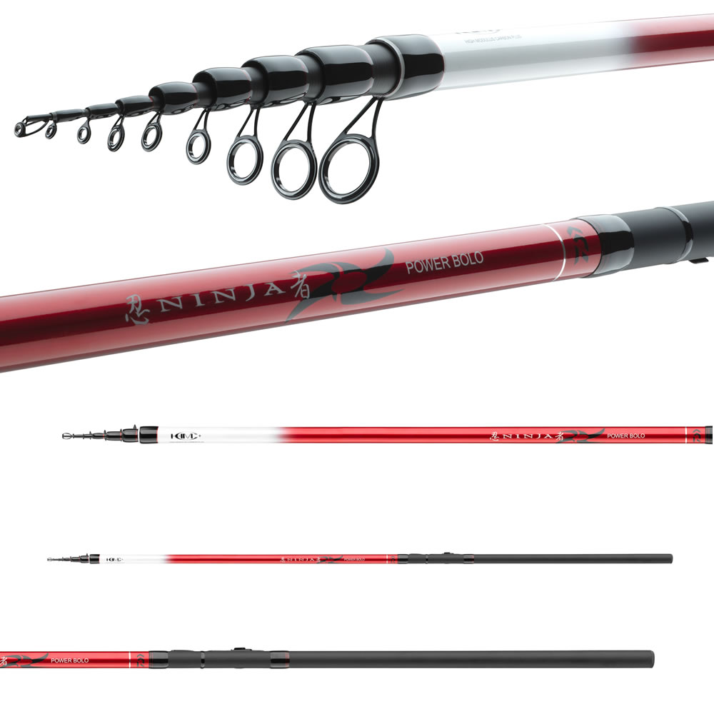 Velmi lehké a tenké uhlíkové blanky prutů Ninja Bolognese se při nahazování ohýbají téměř po celé délce a plavačkové návazce do 25g dosahují vynikajících nahazovacích vzdáleností. Rychlá akce v kombinaci s citlivou špičkou nabízí přesné nahazování i s lehkými splávky. Lehká očka s kroužky z oxidu titanu navíc podporují rychlou akci a optimalizují vyvážení prutů. Tyto pruty nabízejí vynikající poměr ceny a kvality!