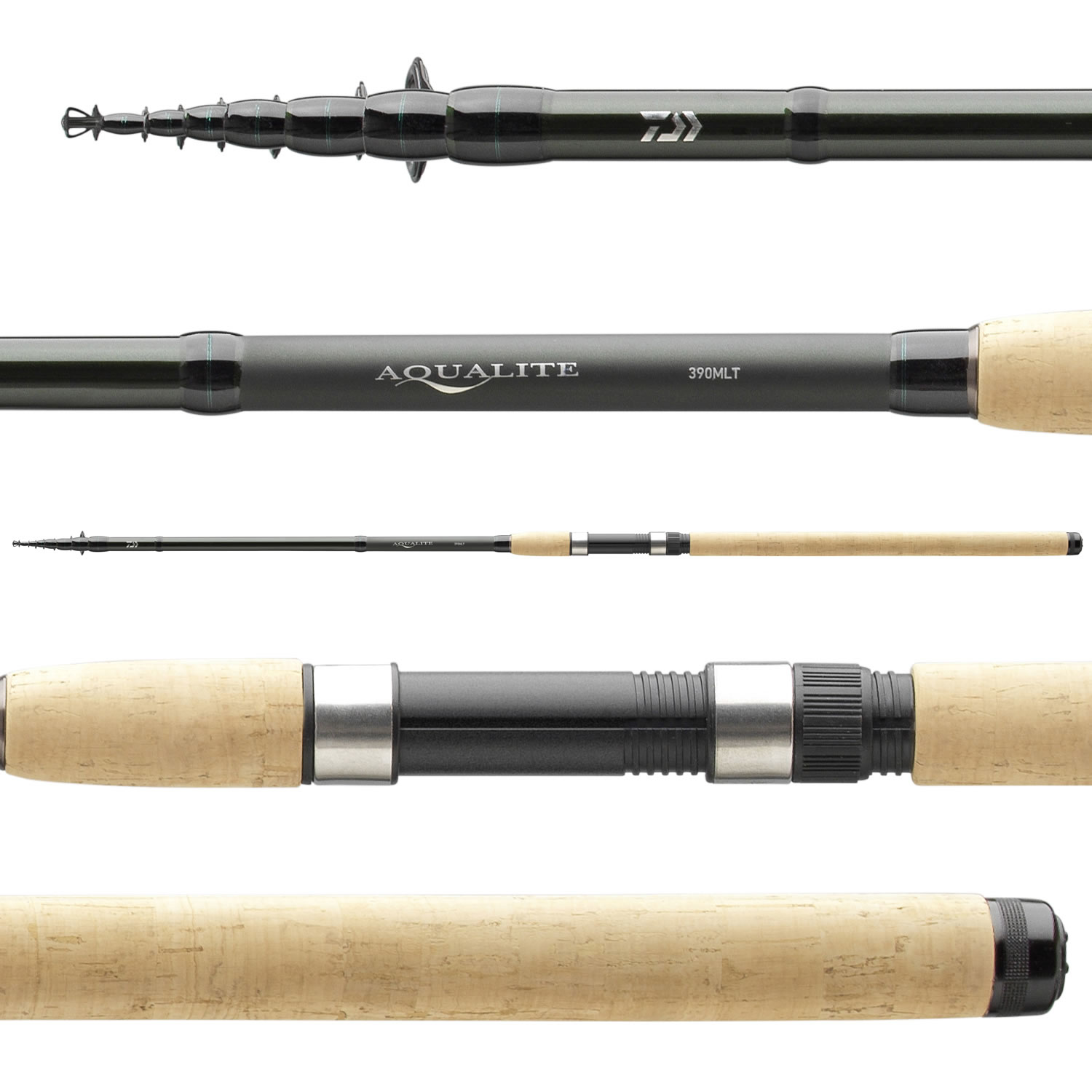 Řada Aqualite také zahrnuje tři teleskopické modely o délce 3,90m, 4,50m a 5,10m. Jejich semi-parabolická akce je vhodná pro lov línů, cejnů a dalších druhů ryb se splávkem. Krátká transportní délka velmi usnadňuje jejich uskladnění a transport. Měkká špička výborně absorbuje všechny výpady a svou akcí navazuje na silnější páteř, což vede k homogenní křivce ohybu a skvělým nahazovacím vlastnostem.