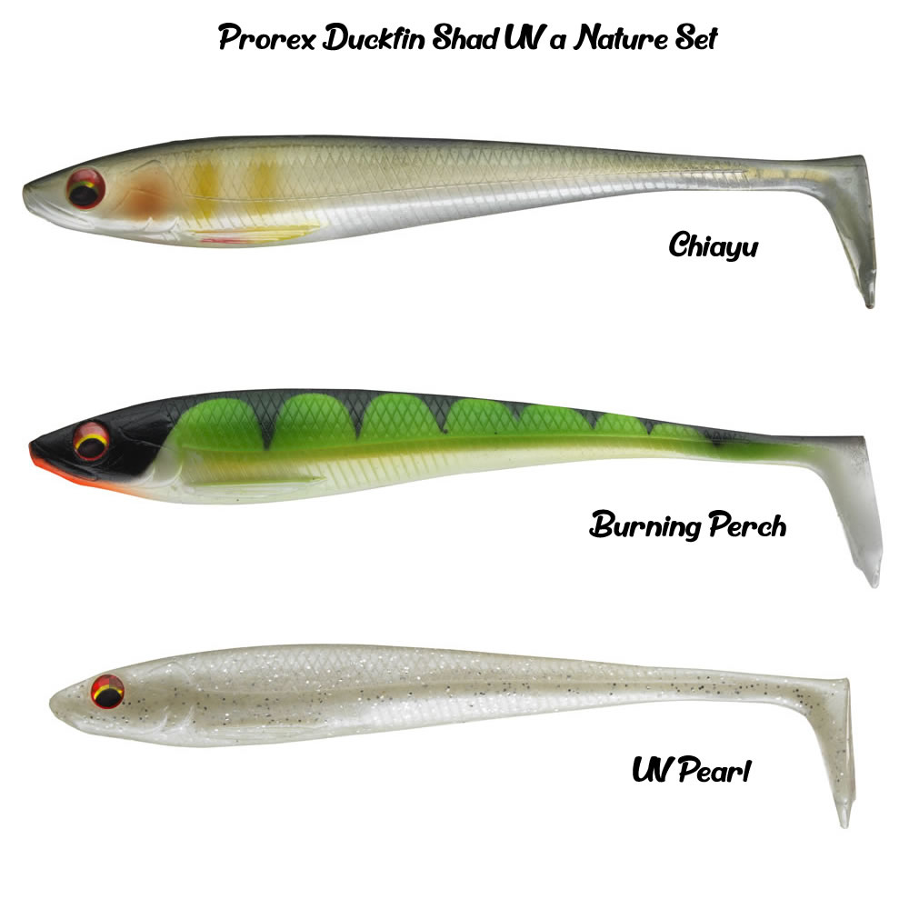 Nabízíme úspěšné a oblíbené originální nástrahy DAIWA DuckFin Shad také jako sadu osvědčených barev. Spolu s našimi týmovými rybáři jsme vybrali barevné kombinace, které obvykle vždy bodují. K dispozici sada Nature pro čistou vodu a náročné dny, sada UV pro kalnou vodu a sada UV & Nature pro každou situaci. Bez ftalátů!