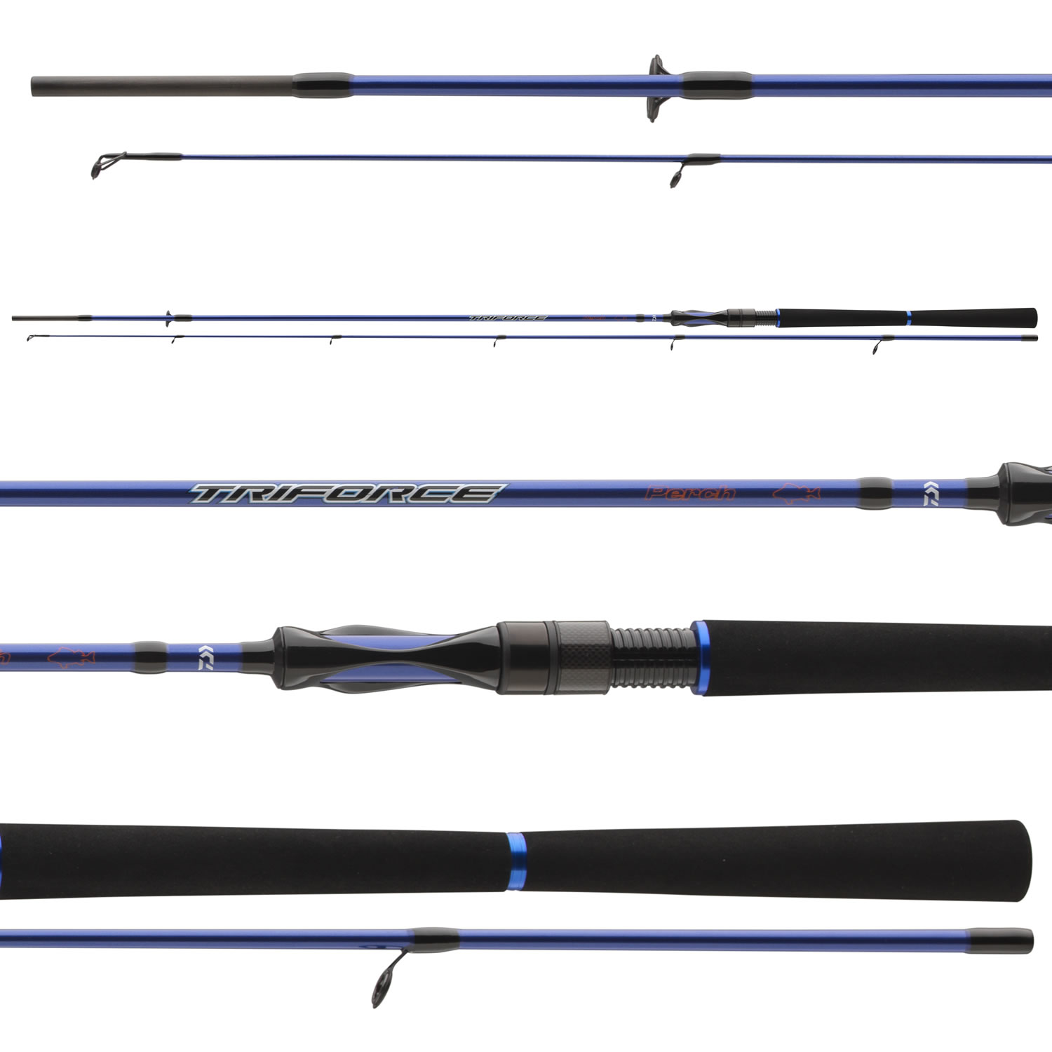 Pro prezentaci malých a středně velkých woblerů a gumových nástrah pomocí baitcasterových navijáků jsou určeny pruty Triforce Caster s ergonomicky tvarovaným sedlem navijáku a vrhací zátěží 7-28g.