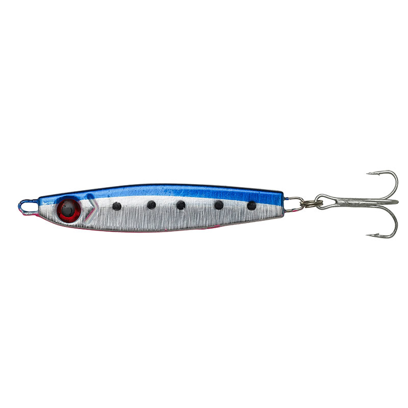 Bezolovnaté pilkery pro mořský rybolov s nepravidelným vzorem, holografickým povrchem s výraznými UV barvami. Pilkery jsou vybaveny pevnými trojháčky s povrchovou úpravou z Perma oceli pro rybolov ve slané vodě.