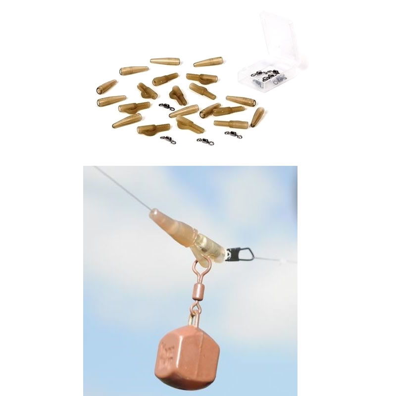 Mini Lead clip pro použití na feeder rybolov s mini obratlíky a převlekami. Závěska byla vyrobena ze speciálního téměř nezničitelného materiálu! Nemusíte mít obavy, že by při náhozu došlo ke prasknutí! Na závěsce jsou závity pro našroubování převleku tail rubber,aby lépe držel. Unitř závěsky je speciální systém, který při vložení pevnostního obratlíku vel.14 zacvakne a tímpádem drží vaší koncovou montáž na pevno zafixovanou.