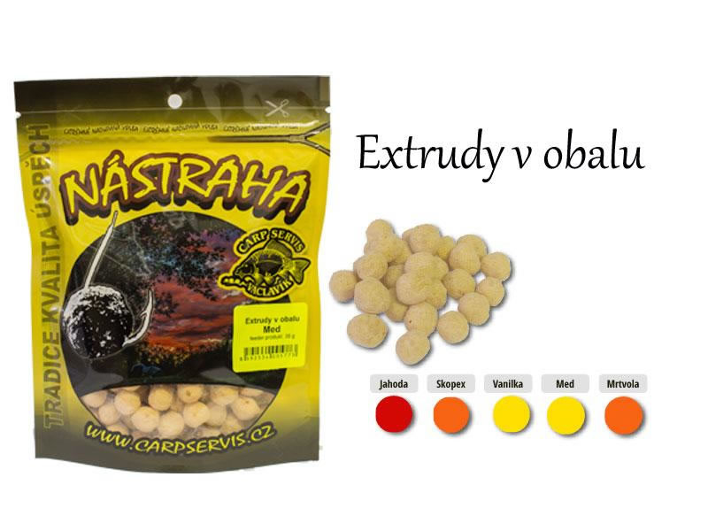 Extrudy v obalu jsou speciální měkkou nástrahou s prodlouženou trvanlivostí nastražení. Po vhození do vody se náhle projasní a zesílí jejich barva, která se pak stává jedním z důležitých aspektů rybolovné úspěšnosti. Atrakční impulzy tato nástraha vydává díky použitým enzymaticky upraveným živočišným bílkovinám, velice intenzivně a dlouho. Extrudy v obalu jsou určeny pro celoroční rybolov.