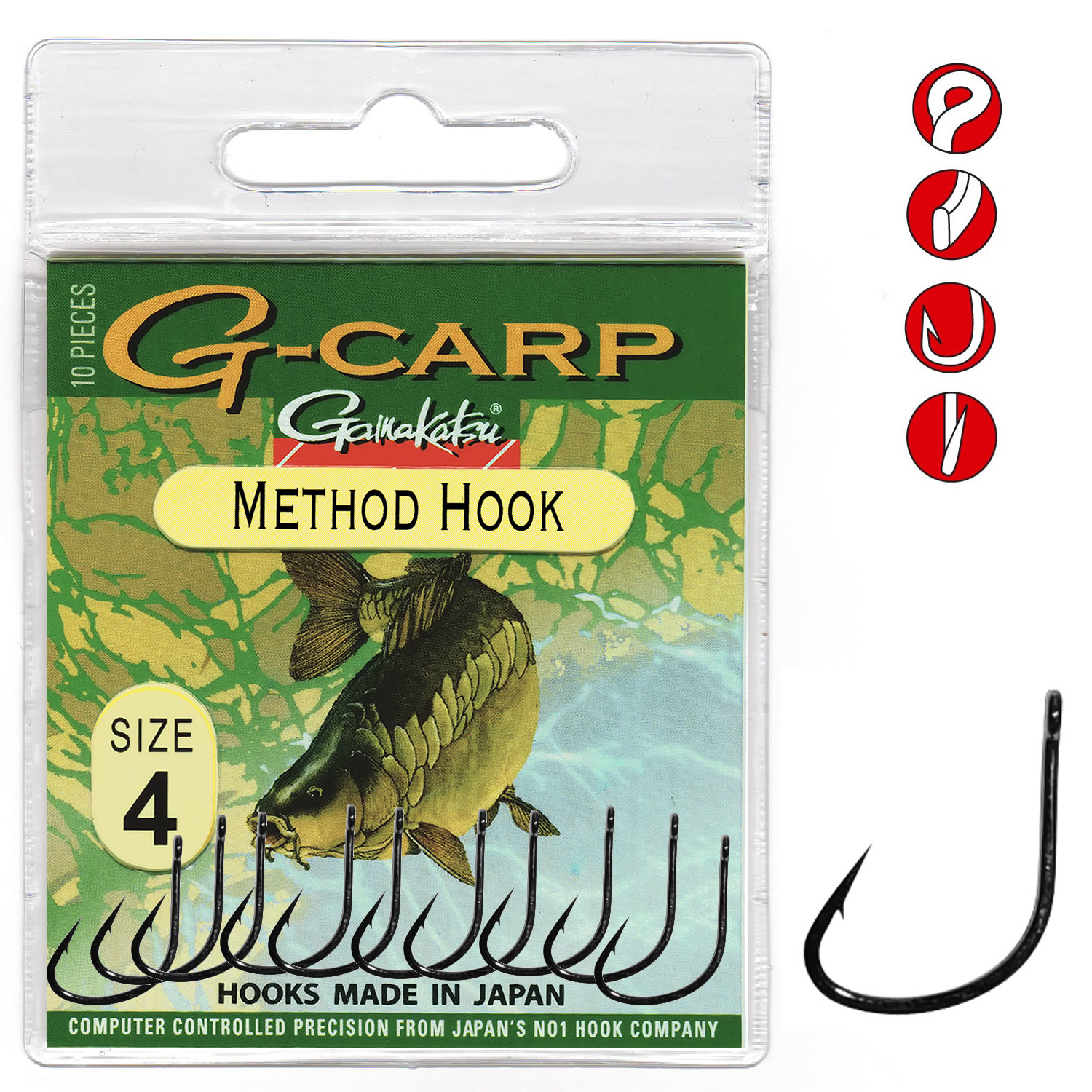Kaprový háček z tenkého drátu pro partiklový a ‘Method’ rybolov. Gamakatsu® je vůdce trhu ve výrobě špičkových rybářských háčků, věnující se výzkumu trhu a průběžnému vývoji unikátních produktů, které splňují požadavky rybářů po celém světě.