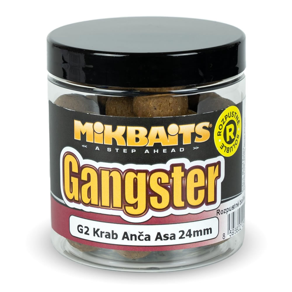 Gangster G2 Krab&Ančovička&Asa je bezpochyby největší ikonou mezi boilie na velké kapry. Obrovskou popularitu si drží od uvedení na trh v roce 2010 a každým rokem ji ještě navyšuje. Pro mnoho zkušených kaprařů je to jednoznačná volba, pokud je čekají výpravy na velké ryby, prestižní závody nebo chtějí na neznámou či velmi obtížnou vodu něco, na co se můžou spolehnout. G2 má v sobě ale jakýsi zvláštní dar, a tak si ji oblíbili i rybáři, kteří jezdí na víkend či jen odpoledne na privátní vody. Úspěšně s ní chytají i rybáři na menších řekách či rybnících. Kouzlo G2 spočívá v neskutečně našlapané směsi bez jakýchkoli objemových přísad, prvotřídních esencích, esenciálních olejích a v neposlední řadě Ančovičkovému extraktu, který používáme právě a jen do tohoto boilie. I díky tomu má Gangster silnou slanou chuť a vůni mořské potravy. Je velmi pevný, na háčku vydrží nastražený až dva dny, samozřejmě, při vysoké aktivitě sumečků nebo bílé ryby se může rozpadnout výrazně dřív. Funguje i s minimem návnady, ryby na něj reagují okamžitě, ale čím déle a více s ním vnadíte, tím je lepší.