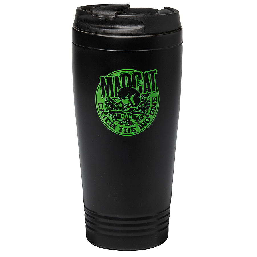 Cestovní termo hrnek z nerezové oceli, který udrží nápoje teplé nebo studené. Pasuje do většiny držáků na pití v autě nebo na lodi.
