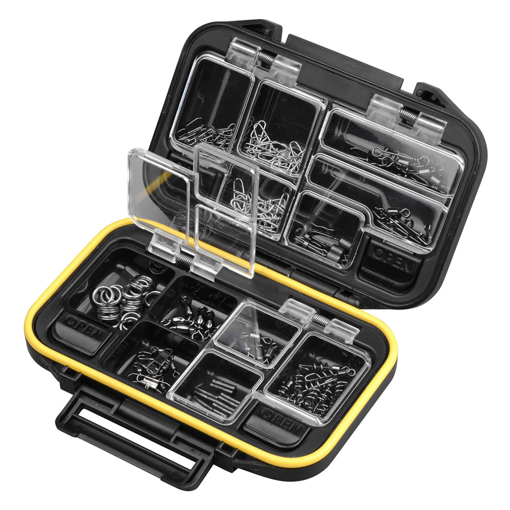 Do této špičkové krabičky s jednodotekovým víčkem se vejde všechno malé příslušenství, jako karabinky, obratlíky, kroužky, spojky atp. Malá krabička zabírá jen trochu místa a může být použita jak při rybolovu z lodi, tak podél polderů.