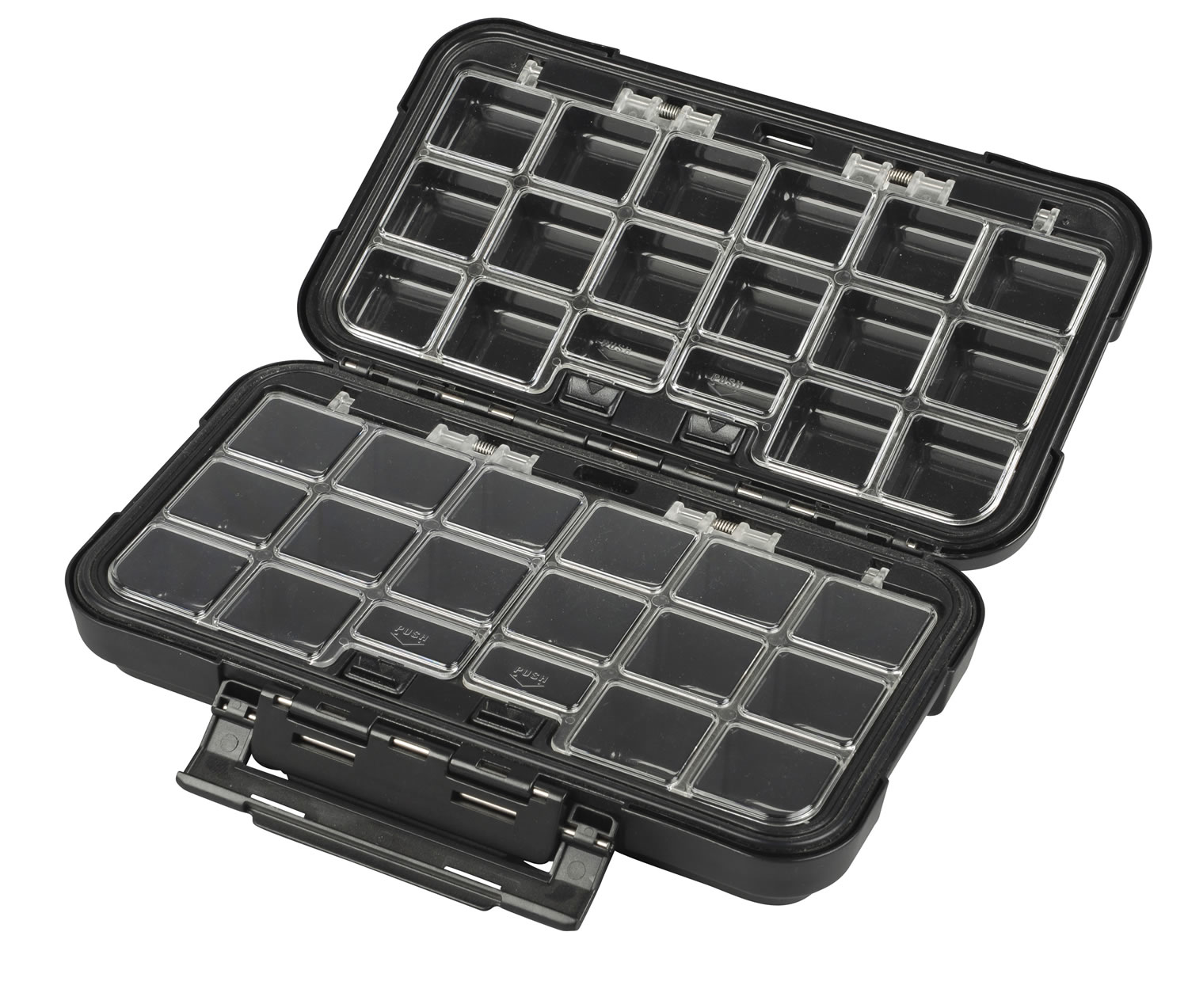 Do této špičkové krabičky s jednodotekovým víčkem se vejde všechno malé příslušenství, jako karabinky, obratlíky, kroužky, spojky atp. Malá krabička zabírá jen trochu místa a může být použita jak při rybolovu z lodi, tak podél polderů.