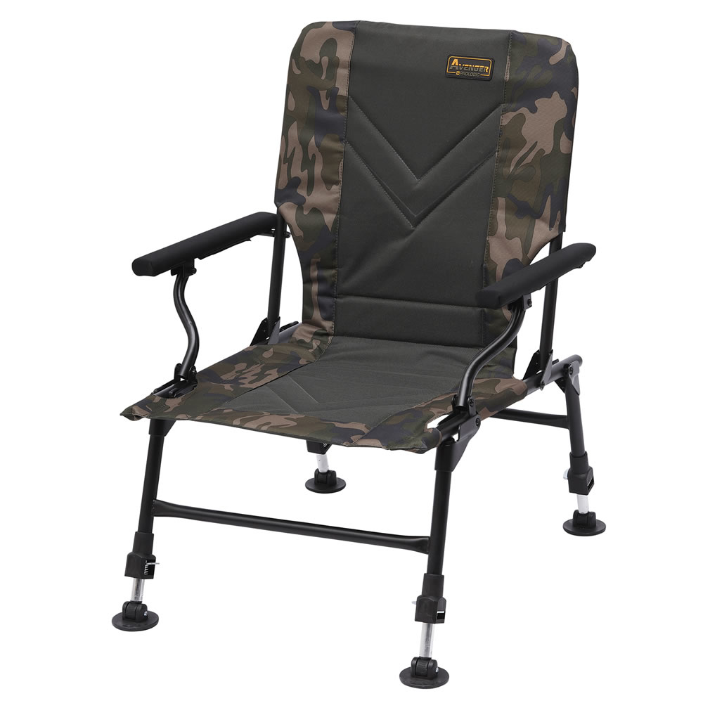 Lehké a kompaktní křesílko s neoprenovými područkami, s velkoryse polstrovanou matrací a Avenger camo vzorem. Výškově stavitelné nohy jsou opatřeny otáčivými patkami proti zaboření.