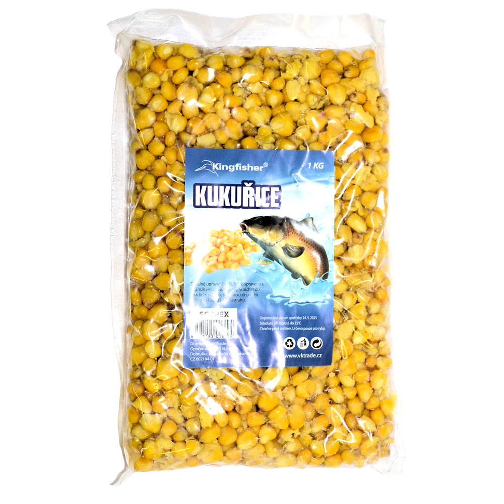 Tepelně upravena ochucená kukuřice k okamžitému použití. Lze ji použít přímo na háček jako nástrahu, případně vmíchat do vnadící směsi či method mixu.