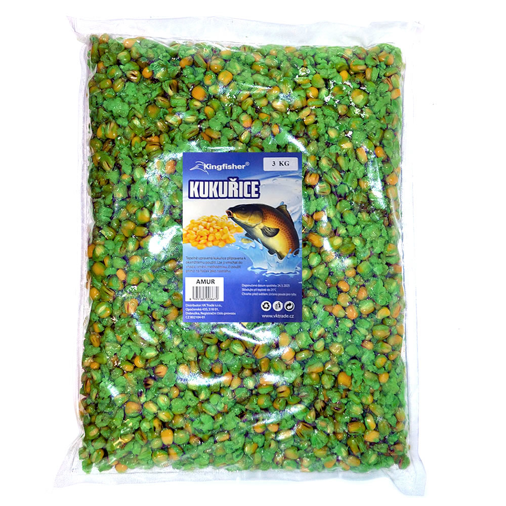 Tepelně upravena ochucená kukuřice k okamžitému použití. Lze ji použít přímo na háček jako nástrahu, případně vmíchat do vnadící směsi či method mixu.