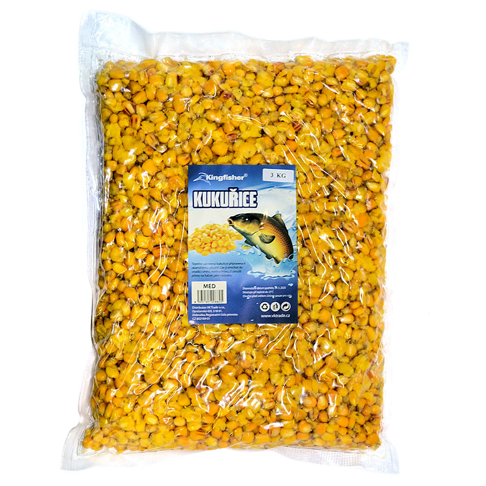 Tepelně upravena ochucená kukuřice k okamžitému použití. Lze ji použít přímo na háček jako nástrahu, případně vmíchat do vnadící směsi či method mixu.