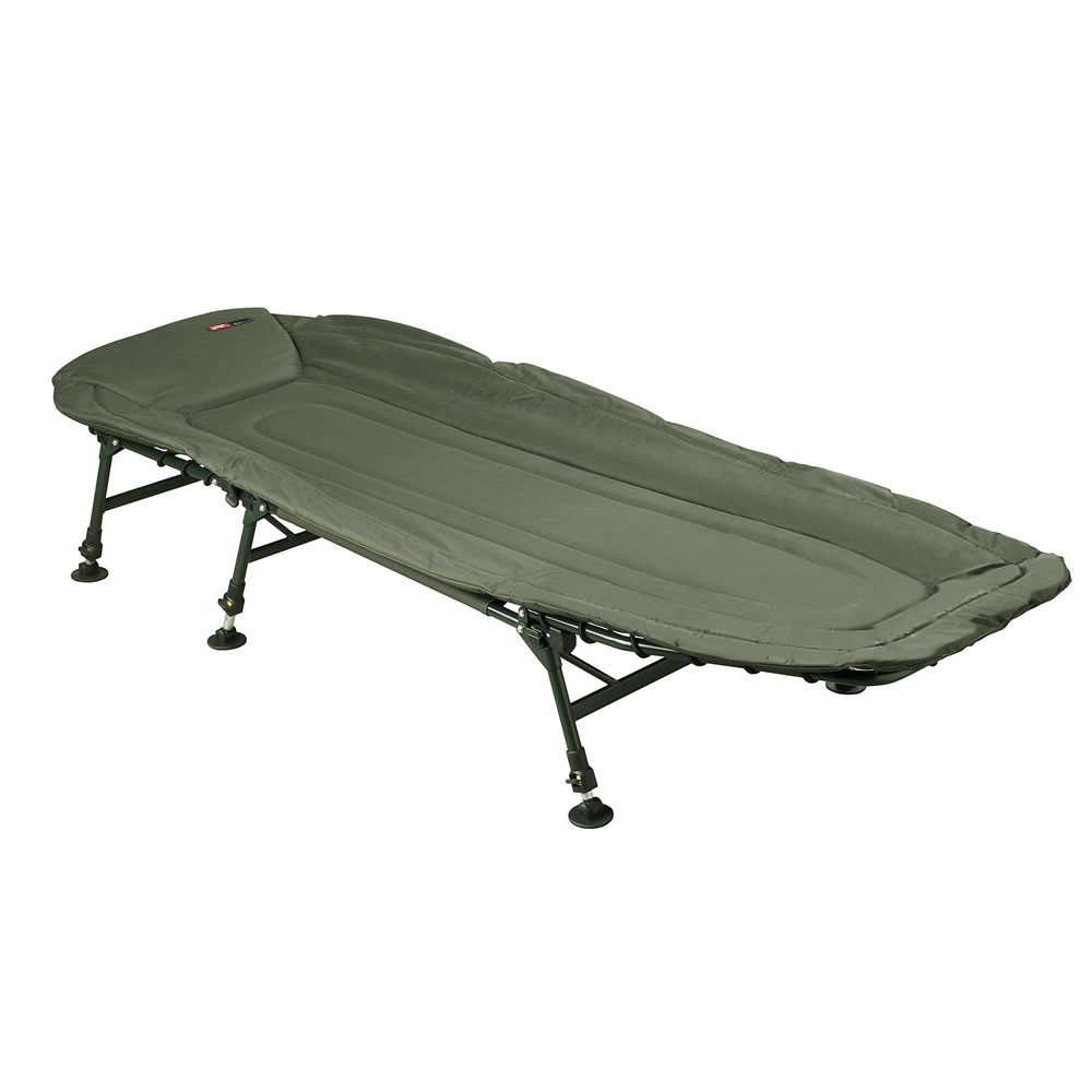 Představujeme lehátka nové generace od JRC. JRC Contact Lite je lehátko s robustním Hi-Tensile hliníkovým rámem. Poskytuje hned několik možností nastavení sklápění. Nohy lehátka mají nastavitelnou délku a otočné patky proti klesání do měkčího podloží. Luxusní tlustá polstrovaná matrace je vyrobena z odolného 100% 600D polyesteru a je vyplněna pěnou s velkou hustotou.