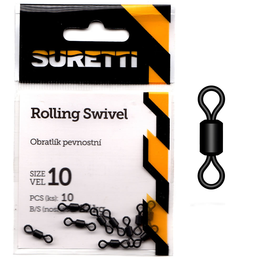 Pevnostní obratlík Rolling s antireflexní černou barvou. K navázání použijte jednoduchý a spolehlivý uzel Clinch. Při dotahování uzlu nezapomeňte vlasec navlhčit. Bude se lépe dotahovat, vlasec se neponičí a dosáhnete tak vyšší pevnosti uzlu. Na ochranu uzlu použijte Gumový korálek nebo korálek Tapered Bore.