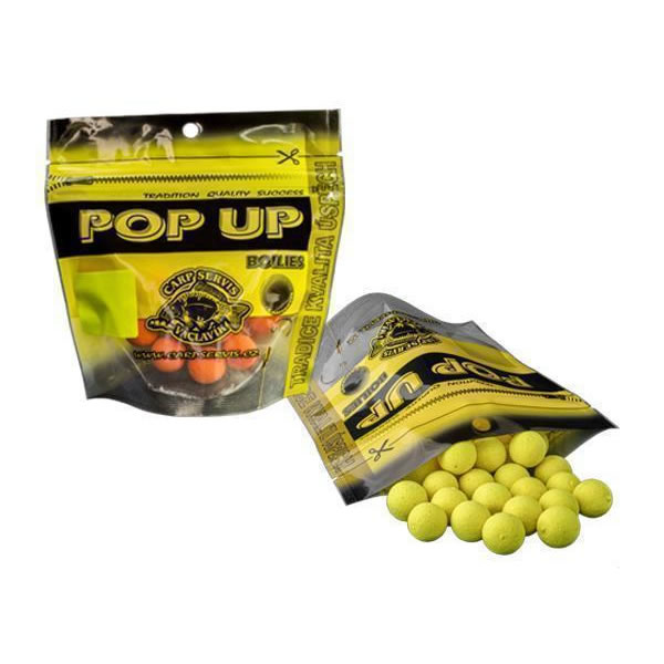 Plovoucí boilies Pop Up Carp Servis kopírují svými variantami klasické boilies v nabídce firmy Carp Servis Václavík. Předností je bezesporu značná stabilita vztlaku, a to i po více než 12 hodinách nastražení ve vodě. Je možné je snadno dodatečně dipovat v tekutých dipech, nejlépe však pomocí gelů. Funguje až do zámrzu.