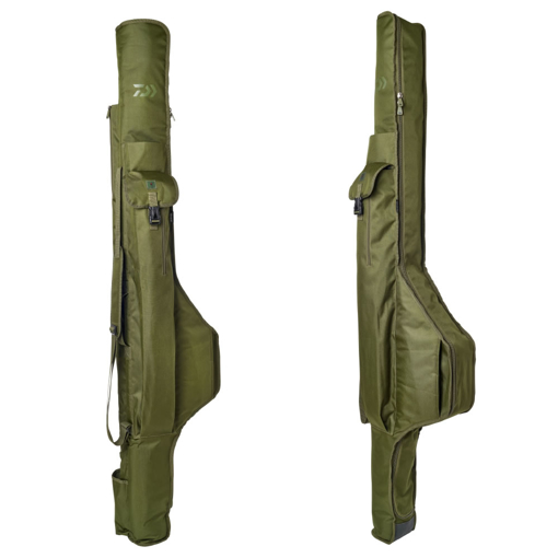 Tato prémiová, polstrovaná a velmi robustní pouzdra pojmou až tři sestavené pruty. Vhodné i pro naváděcí očka velikosti 50mm. S polstrovanými přepážkami a suchým zipem pro optimální ochranu prutů. S kapsou na další vybavení, jako jsou vidličky, vážicí taška atd. Dno z PVC zabraňuje pronikání vlhkosti. Polstrovaný ramenní popruh pro pohodlné přenášení.