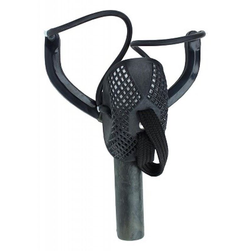 Robustní zakrmovací prak z pevného plastu v Camo provedením, s kvalitním košíčkem a náhradními pásky na gumu.