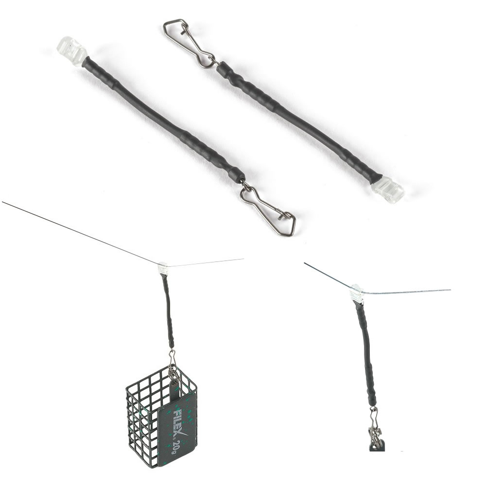 Filfishing Průjezdy Feeder Stiff Link Fil jsou pevné feederové průjezdy vyrobené z nylonu a potažené smrštovací trubičkou "Shrink tube". Tyto průjezdy úspěsně nahrazují klasické průjezdy, tzv. anti-tangle hokejky a díky jejich pevnosti značně snižují možnost zamotání. Tento typ průjezdu je na jednom konci opatřen plastovým pojezdem aby co nejméně odíral vlasce nebo šňury, druhý konec je opatřen pevnou karabinou pro uchycení krmítka. Díky těmto průjezdům budete přicházet o méně krmítek a budete snáze detekovat záběry. Delší ( 80mm ) verzi doporučujeme do proudu.