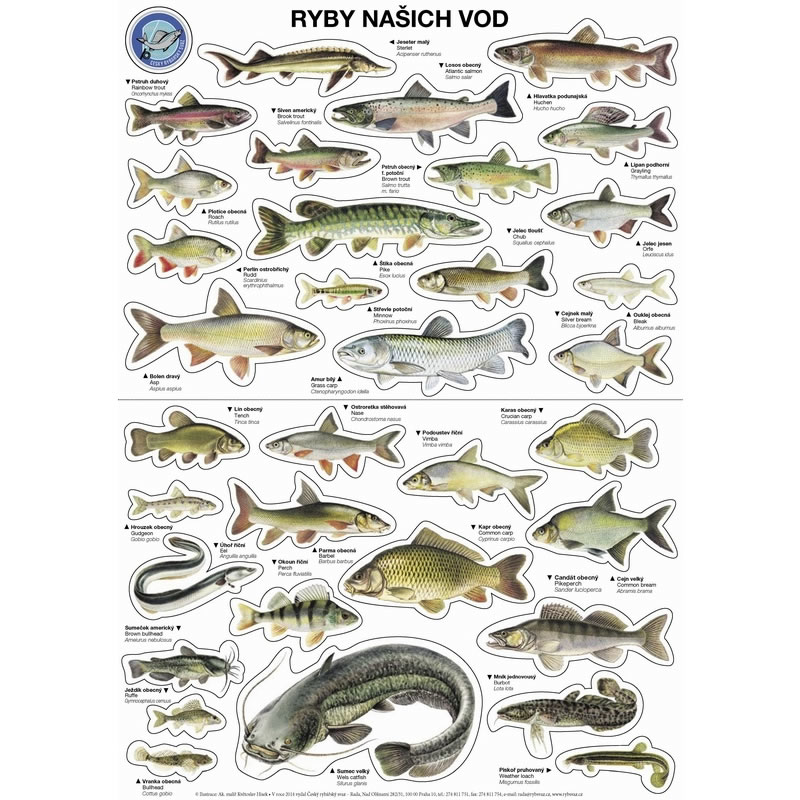 Samolepky 34 druhů ryb našich vod na formátu A3.