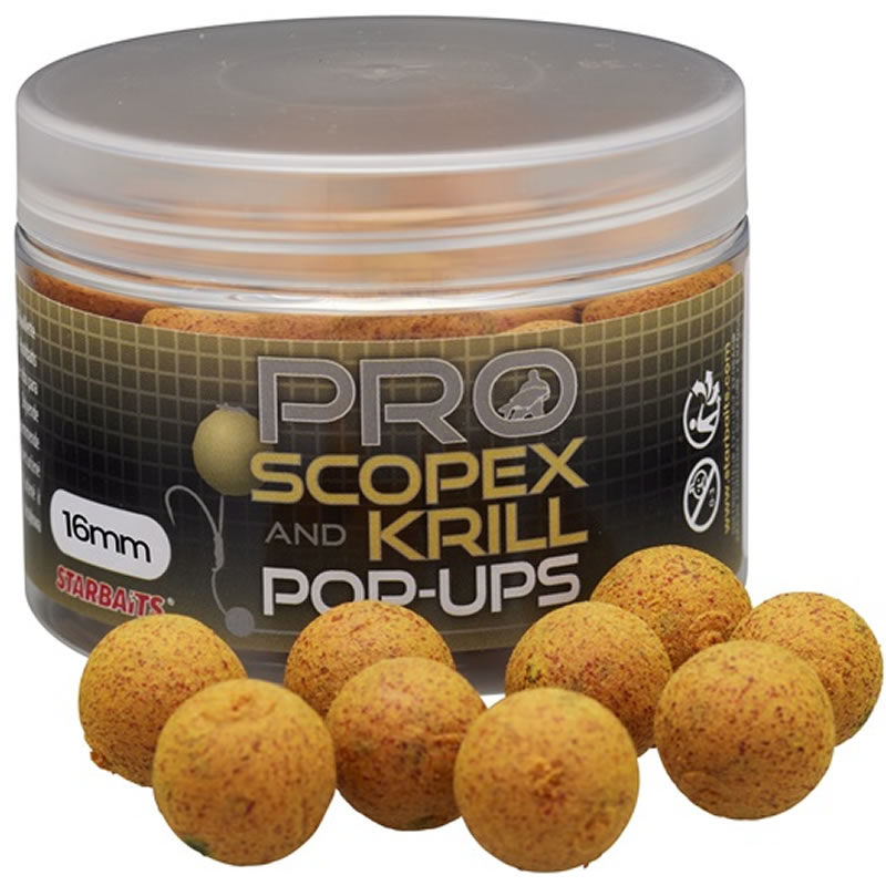 Plovoucí boilies POP-UP se silným a intenzivním aroma scopexu a krillu. Výrazná barva láká kapry i z velké vzdálenosti. Je plné přírodních látek, obsahuje výběr mouček, minerálů i koření. Výborné plovoucí vlastnosti. Pro vyšší atraktivitu můžete na zvýraznění použít dropper. Plovoucí boilies je použitelné celoročně na všech typech vod.