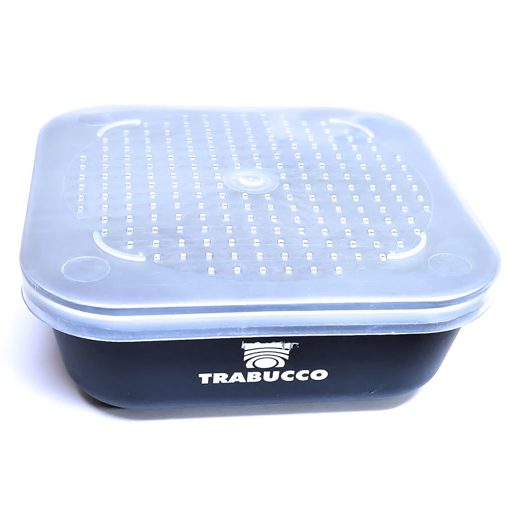 Plastový box s průhledným víkem opatřeným průduchy je ideálním pomocníkem pro skladování žívé nástrahy jako jsou červi, žížaly apod. Boxy se vyrábí ve třech různých velikostech.