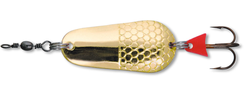 Osvědčená třpytka plandavka v účinné barvě doplněna navíc o červený spouštěč, což často přinutí ryby k záběru. Dostupná v rozmezí 6g až 45g, všechny jsou vyrobeny z mosazi.