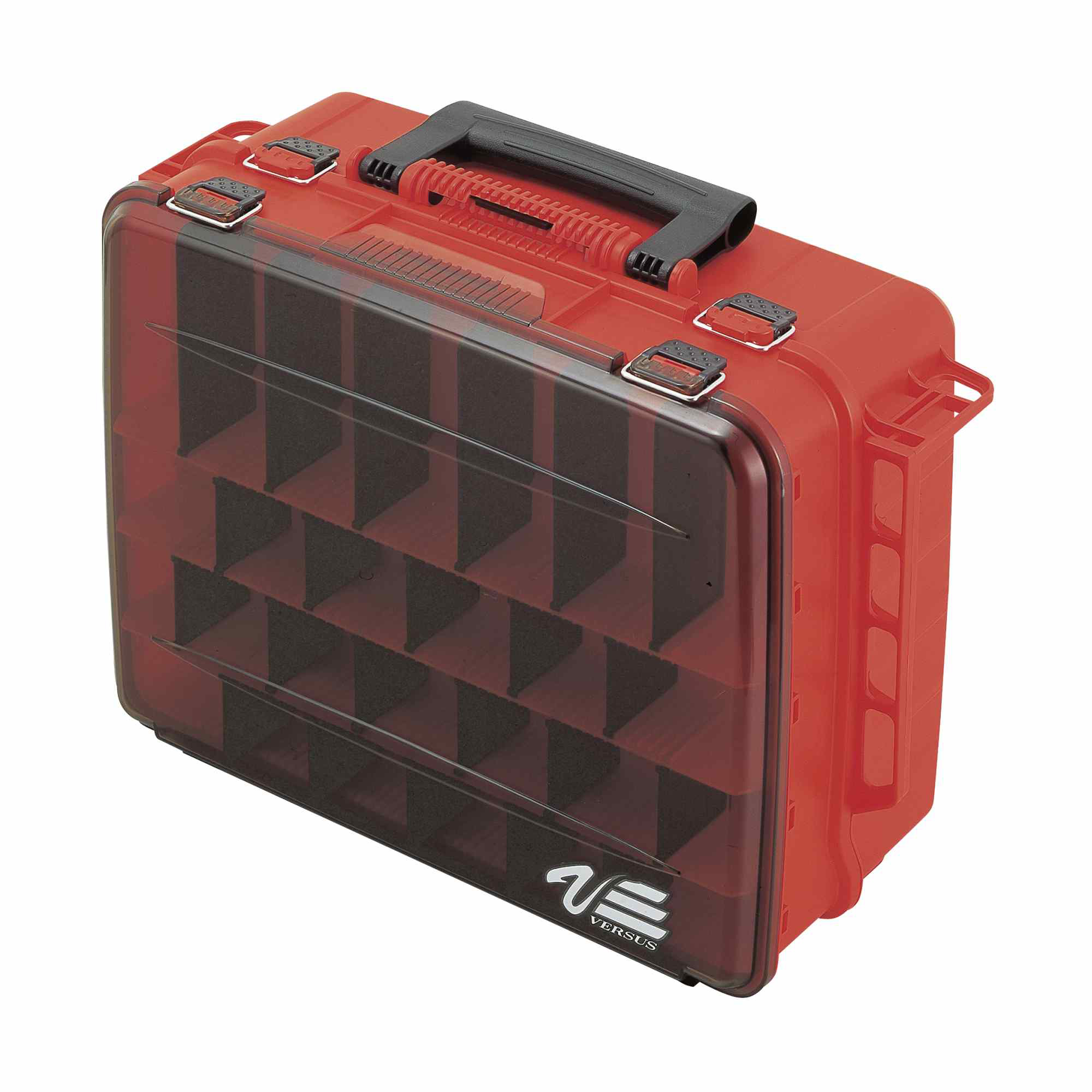 Vysoce užitný a kvalitní kufr japonské značky Versus vyroben z nárazuvzdorného polymeru. V horním úložišti jsou drážky do kterých se dají vložit přepážky a tím využijete každý koutek či škvírku pro vaše náčiní. Spodní úložiště obsahuje děliče které také můžete nastavit dle svého uvážení. Horní kryt je uzamykán dvojitým zámkem pro zabránění náhlému a nečekanému otevření kufru. Železné zámky v předu jsou z nerezové oceli proti rzi a opotřebování. Ze zdola kufru je guma proti klouzání na hladkém povrchu. Do kufru lze vložit krabičky typu SFC LL, SFC F, WG 9, WP 3, VS 820ND (NDM) a VS 4060.