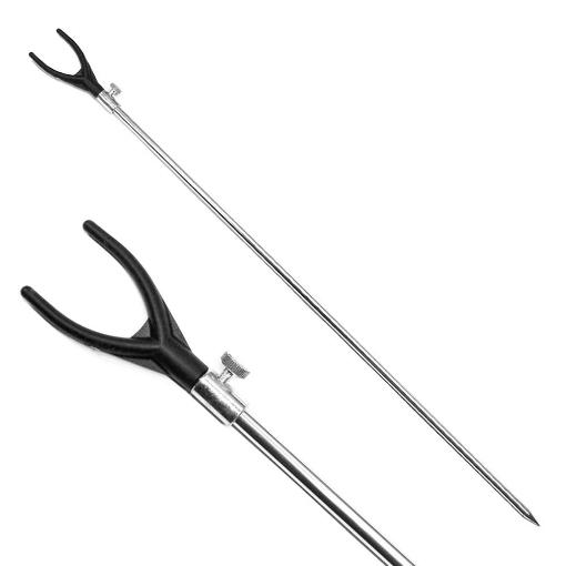 Výškově stavitelné ocelové podpěrky pod prut aretované šroubkem. Podpěrka, vidlička, je zakončena plastovým dílem ve tvaru "U" (zadní) černé barvy. Plast je nárazuvzdorný a odolávající teplotním změnám.
