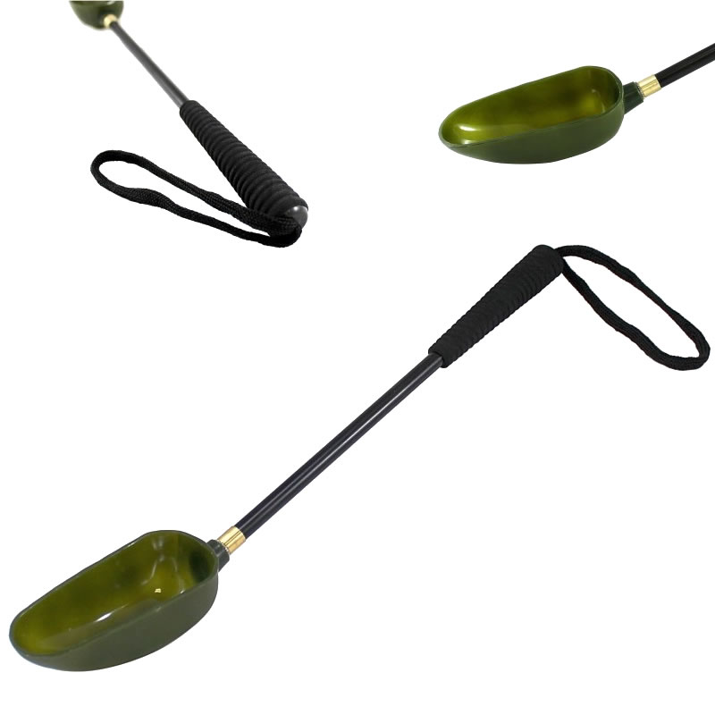 Malá, ale užitečná zakrmovací lopatka. Jedná se o luxusní model s tenkou, lehkou ale pevnou rukojetí s pěnovým držadlem a poutkem na zápěstí. Vhodná ke krmení kukuřicí, peletkami a jiným partiklem.