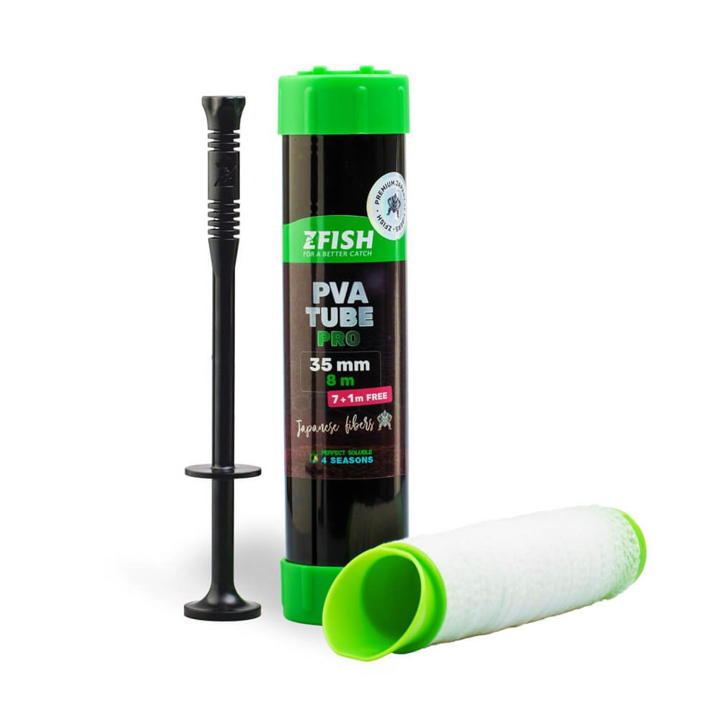 PVA punčocha ZFISH vyrobena z kvalitního japonského materiálu. Nabízí 100% rozpustnost a velkou pevnost vláken. Díky zvýšené hustotě výpletu je velmi odolná a udrží vaši návnadu na místě i při tom nejsilnějším náhozu. Odhadovaná doba rozpustnosti je přibližně 25-50 sekund, přičemž rozpustnost závisí na teplotě vody. Punčocha je dodávána včetně praktického tubusu s nakládacím trychtýřem a pěchovadlem pro snadnou a efektivní přípravu krmících punčoch.