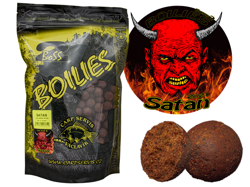 Larger 25 mm diameter variant for selective fishing of bigger fish. Satan boilies are a unique combo of enzymatic ingredients, natural spices, chilli, and green herbs. This "hellish" mix works year-round, including cold water.