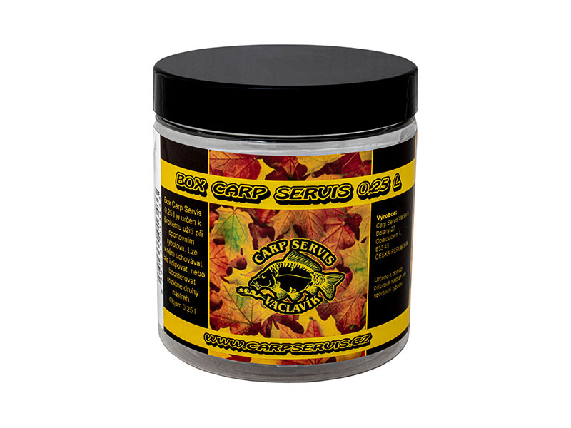 Universal plastic jar with screw lid, 250 ml capacity. Ideal for storing and dipping boilies, pellets, pop-ups, or mixing small amounts of groundbait. Protects bait from drying out and aroma loss.