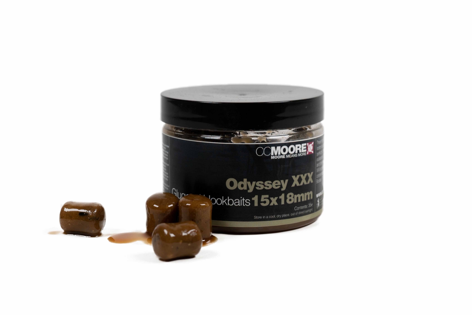 CC Moore Odyssey XXX glugged hookbaits are a legend that redefines successful trophy fishing. These 15x18mm dumbell-shaped baits are based on a fishmeal mix and contain an incredible 10% GLM extract (Green Lipped Mussel). Heavily soaked in the original Odyssey XXX dip, they act as a scent bomb with instant effect. Features a deep, natural marine and yeasty profile that big carp trust instantly throughout the season.