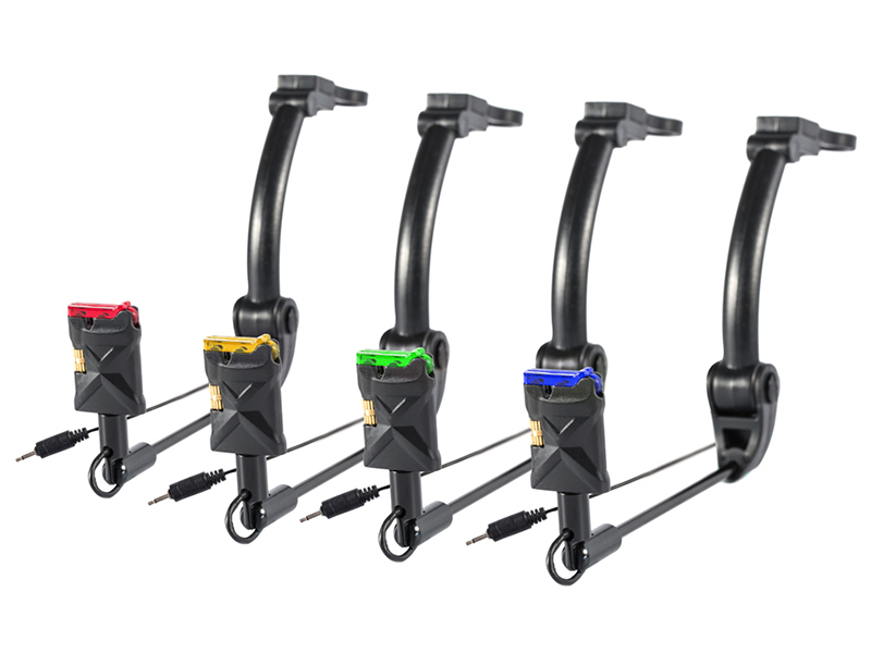 Modern swing arm indicator with a rigid arm, ensuring precise bite indication even in wind. Equipped with an integrated yellow LED. Connects to your bite alarm via a Jack plug to light up during a bite.