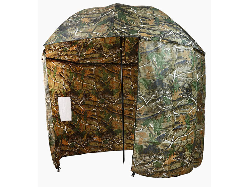 Large and practical umbrella with a detachable side panel, offering perfect shelter during bad weather. Made from lightweight yet waterproof 210D material in an attractive camouflage design. The zip-on side panel protects you from side wind and rain.