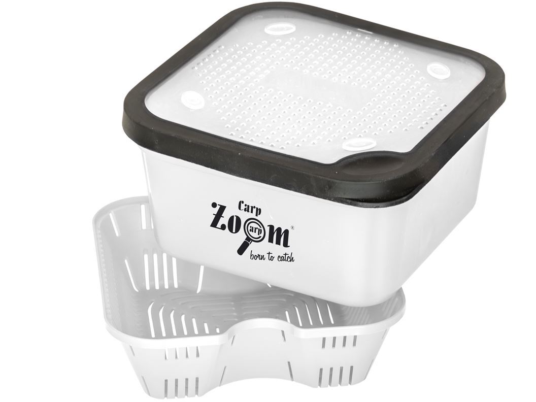 Specialized box for dipping and soaking baits. Contains a removable inner strainer (perforated insert). Usage is brilliantly simple: pour dip/water, insert bait, let soak, then lift the strainer.